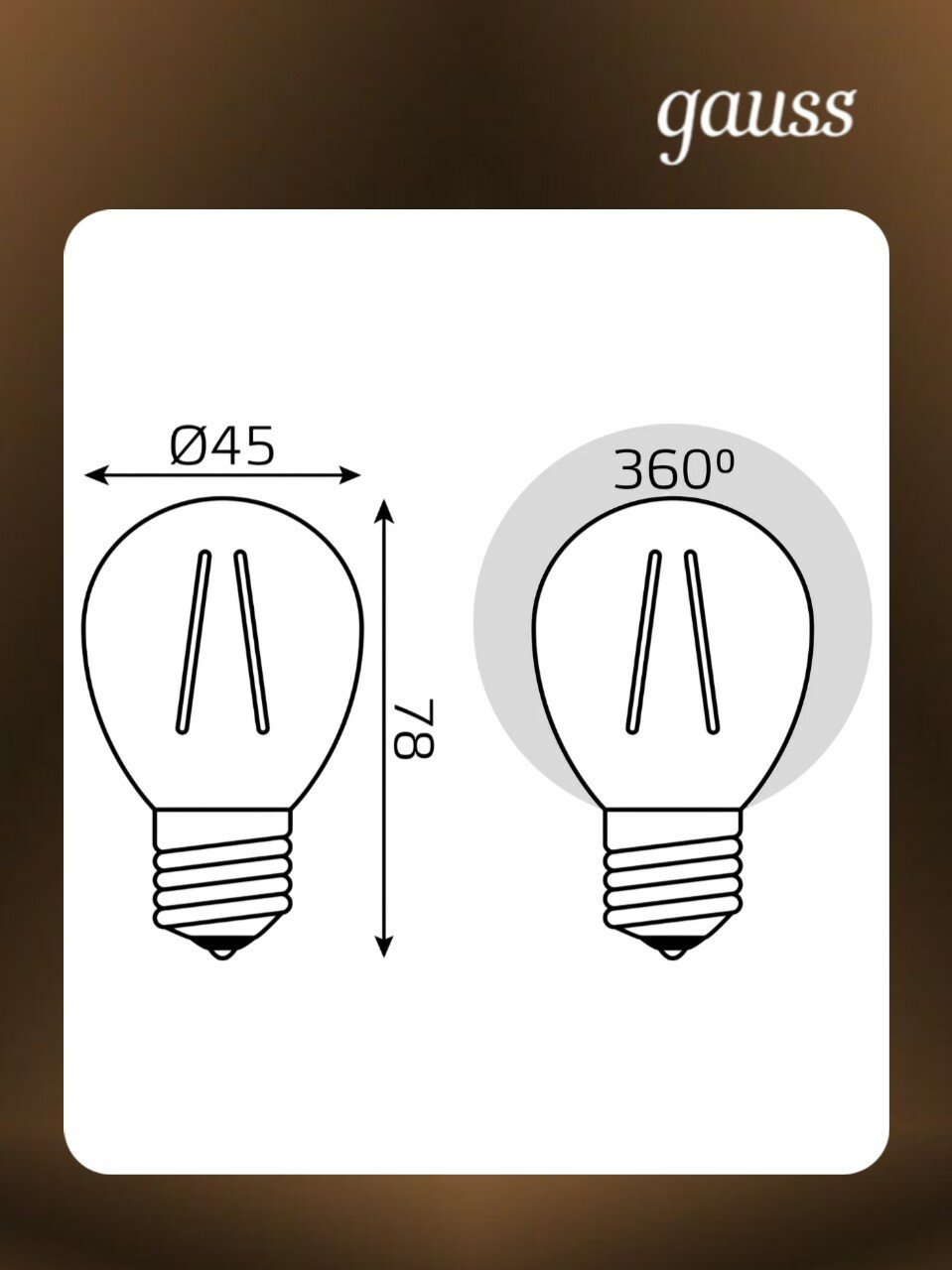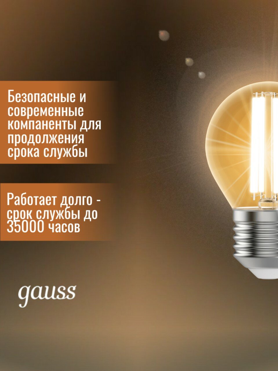 Лампочка светодиодная Gauss Filament Crystal 9Вт, 2700К, 680Лм, E27, теплый свет, шар, филаментная (комплект из 5 шт.): сравнение цен, характеристики, фото, актуальное наличие и цены.