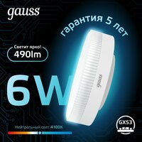 Лампочка светодиодная GX53 6W нейтр белый свет 4100К упаковка 10 шт. Gauss Black: сравнение цен, характеристики, фото, актуальное наличие и цены.