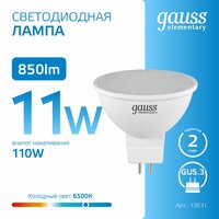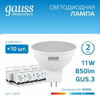 Купить Лампочка светодиодная MR16 GU5.3 11W холодный белый свет 6500К упаковка 10 шт. Gauss Elementary с доставкой по всей России. Лампочка светодиодная MR16 GU5.3 11W холодный белый свет 6500К упаковка 10 шт. Gauss Elementary: сравнение цен, характеристики, фото, актуальное наличие и цены.
