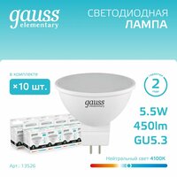 Купить Лампочка светодиодная MR16 GU5.3 5.5W нейтральный белый свет 4100К упаковка 10 шт. Gauss Elementary с доставкой по всей России. Лампочка светодиодная MR16 GU5.3 5.5W нейтральный белый свет 4100К упаковка 10 шт. Gauss Elementary: сравнение цен, характеристики, фото, актуальное наличие и цены.