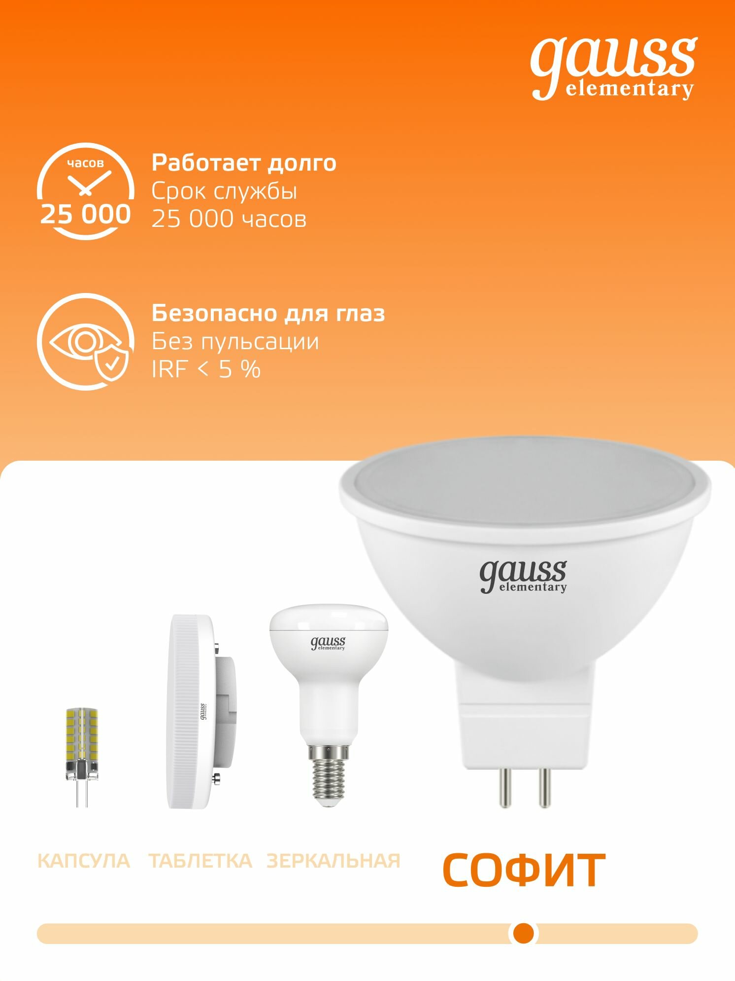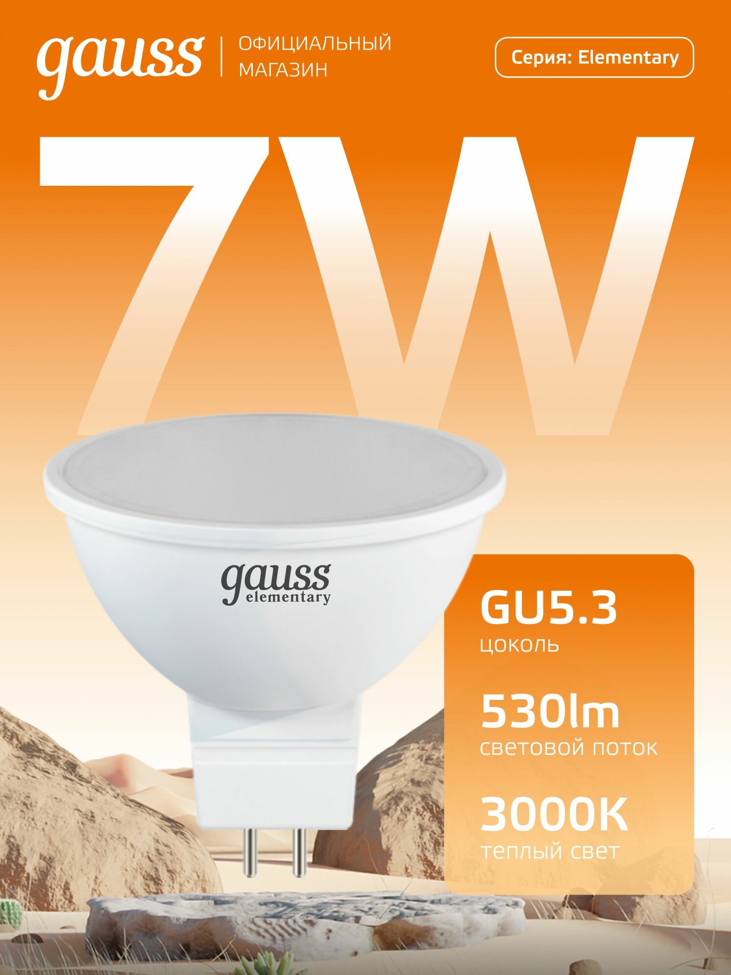 Лампочка светодиодная MR16 GU5.3 7W теплый свет 3000K упаковка 10 шт. Gauss Elementary: сравнение цен, характеристики, фото, актуальное наличие и цены.