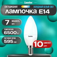 Купить Лампочки светодиодные Camelion LED 7W C35 E14 6500K упаковка 10 шт с доставкой по всей России. Лампочки светодиодные Camelion LED 7W C35 E14 6500K упаковка 10 шт: сравнение цен, характеристики, фото, актуальное наличие и цены.