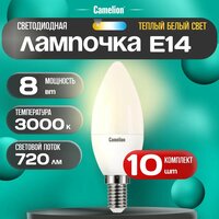 Купить Лампочки светодиодные Camelion LED 8W E14 3000K, 10 штук в комплекте с доставкой по всей России. Лампочки светодиодные Camelion LED 8W E14 3000K, 10 штук в комплекте: сравнение цен, характеристики, фото, актуальное наличие и цены.