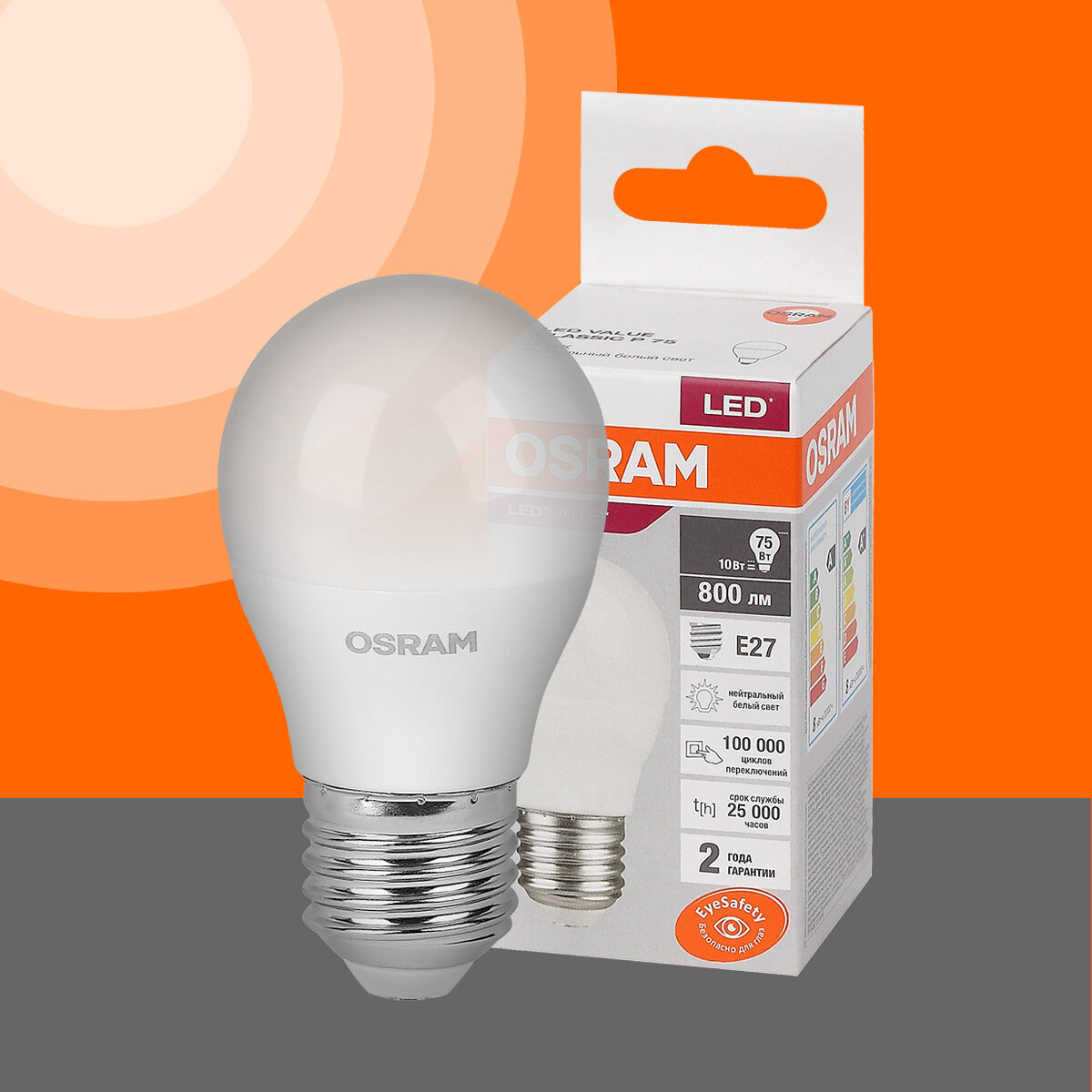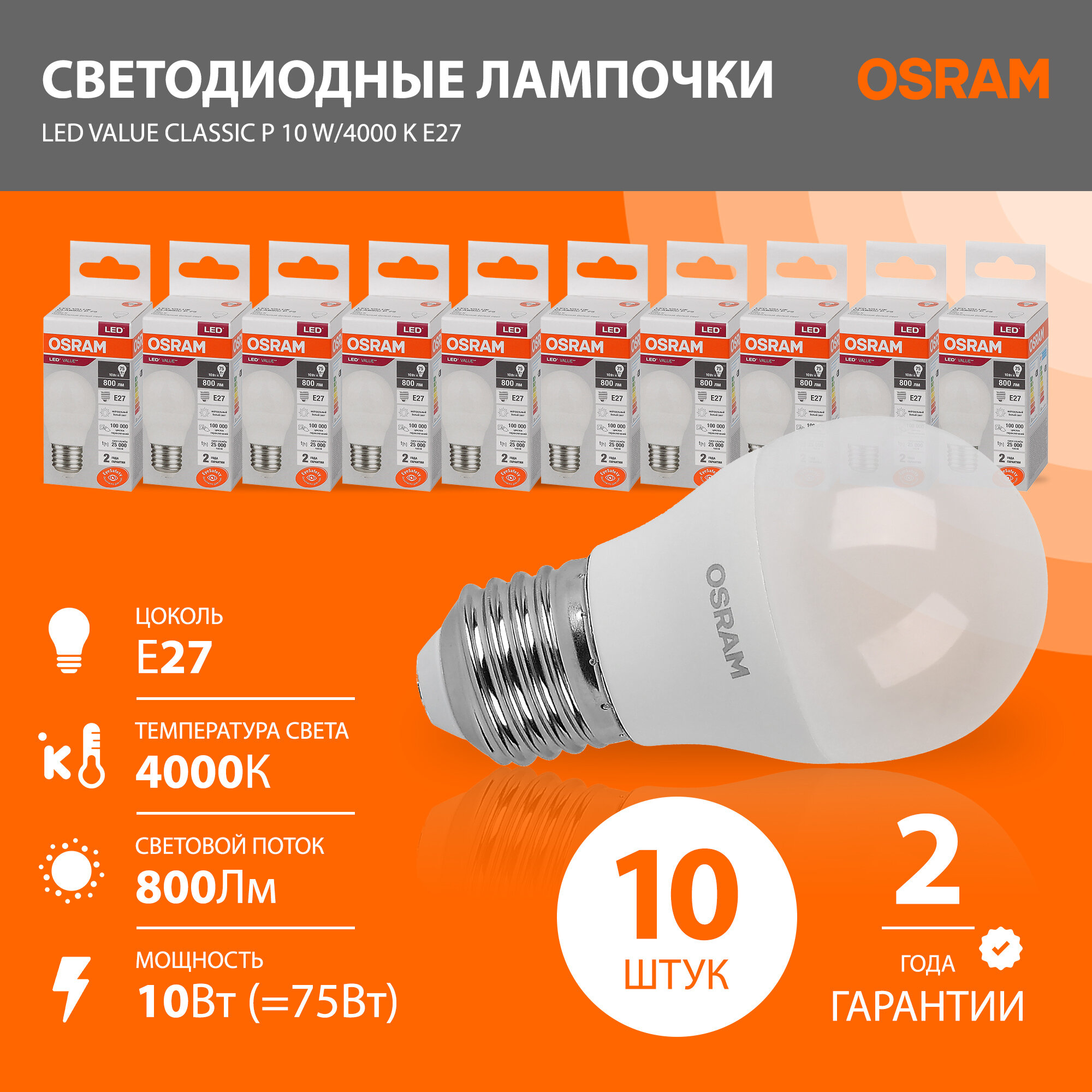 Купить Лампочки светодиодные E27 OSRAM LED Value P 800лм 10Вт 4000К шар матовые 10 шт. с доставкой по всей России. Лампочки светодиодные E27 OSRAM LED Value P 800лм 10Вт 4000К шар матовые 10 шт.: сравнение цен, характеристики, фото, актуальное наличие и цены.