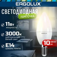 Лампочки светодиодные Свеча Ergolux LED C35, мощность 11W, цоколь E14, теплый белый свет, 10 шт в комплекте: сравнение цен, характеристики, фото, актуальное наличие и цены.