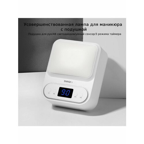Мощная модель светодиодной лампы Sun T9 48Вт предназначена для полимеризации всех типов материалов. Светодиоды распределены внутри лампы, не образуя слепых зон. В лампе T9 применена технология двойного источника света, которая охватывает более широкий спектр ультрафиолетового диапазона: 365-405 nm, что обеспечивает идеальную сушку гель-лаков и обычных УФ-гелей. Размеры лампы позволяют сушить в ней две руки одновременно. Сверху имеется подушка для удобного расположения руки клиента. Основание съемное пластиковое зеркальное, его легко чистить и содержать в чистоте. Характеристики: цвет: белый; наличие дисплея: да; таймер: 30, 60, 90 сек; запоминание таймера: да; тип излучения: UV/LED, светодиоды с двойным источником света (365-405nm); количество светодиодов: 48 шт; срок службы светодиодов: 50 000 часов; мощность: 48 Вт; наличие датчика движения (сенсора): да; напряжение: 100-240 V; частота: 50-60 Гц; размер лампы: 242мм*192мм*108мм; длина шнура: 140 см.