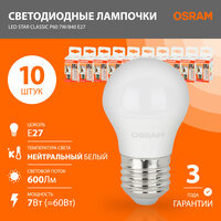 Купить Лампы E27 OSRAM LED Star, 600лм, 7Вт, 4000К нейтральный свет, светодиодные, шар, 10 шт с доставкой по всей России.