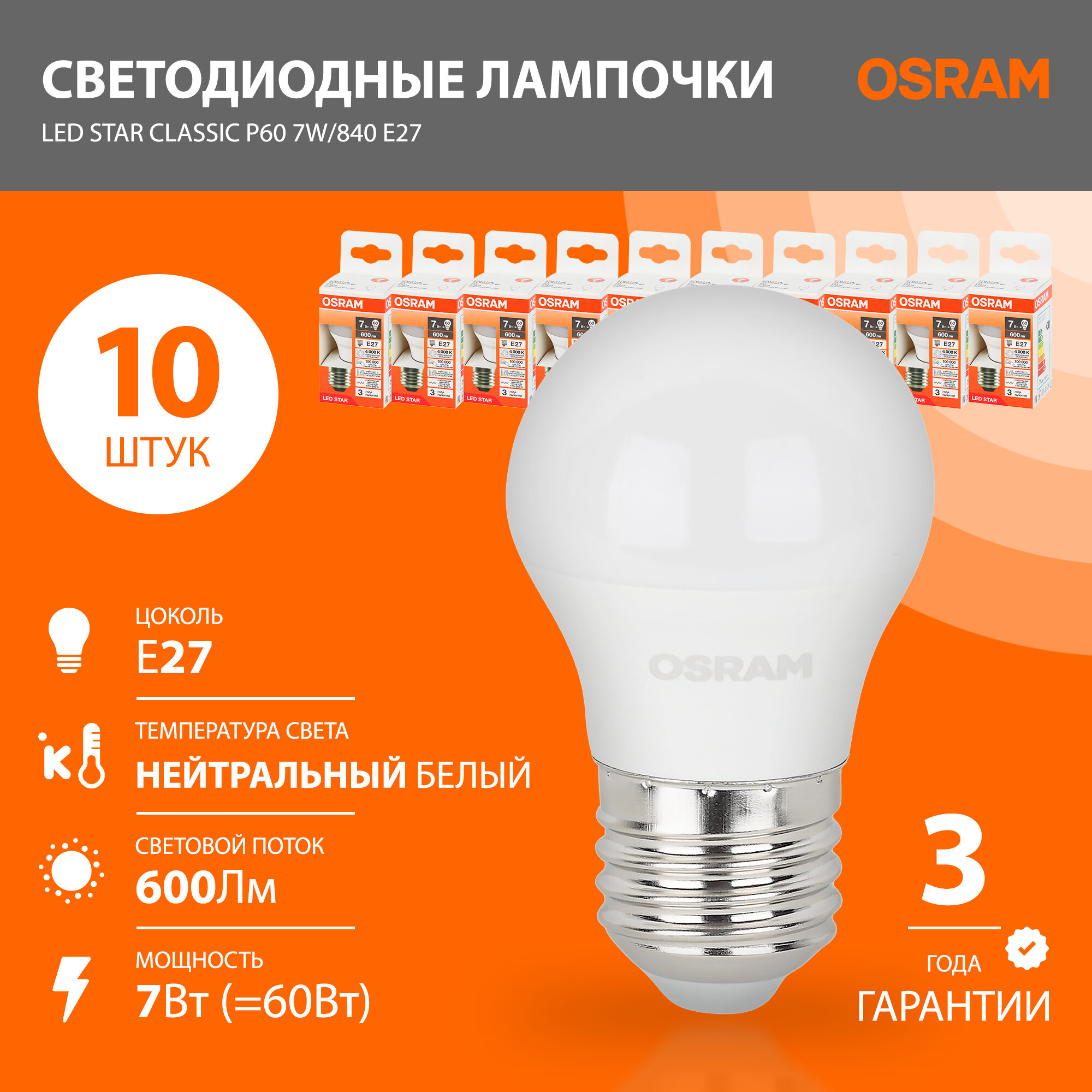 Лампы E27 OSRAM LED Star, 600лм, 7Вт, 4000К нейтральный свет, светодиодные, шар, 10 шт: сравнение цен, характеристики, фото, актуальное наличие и цены.