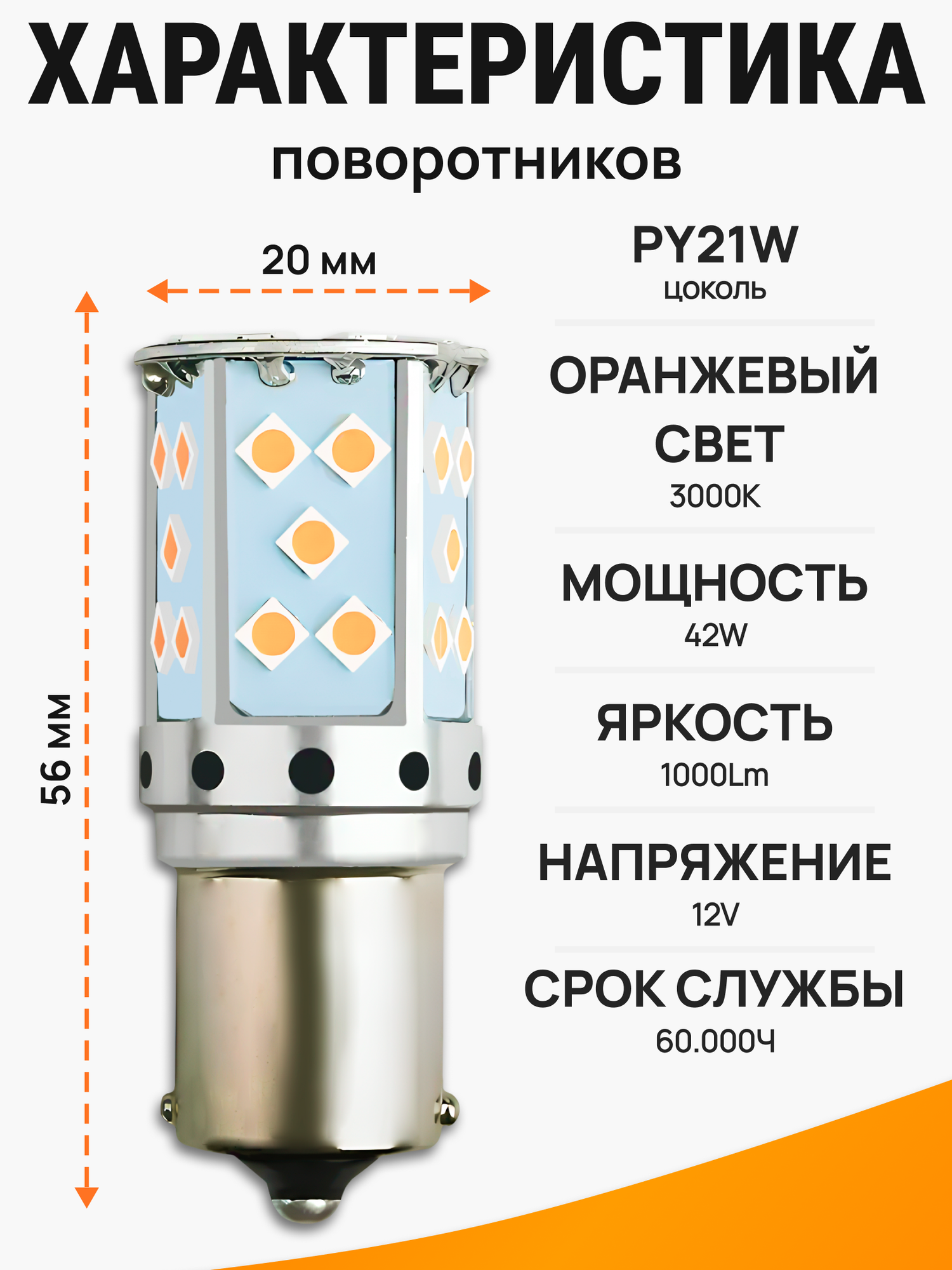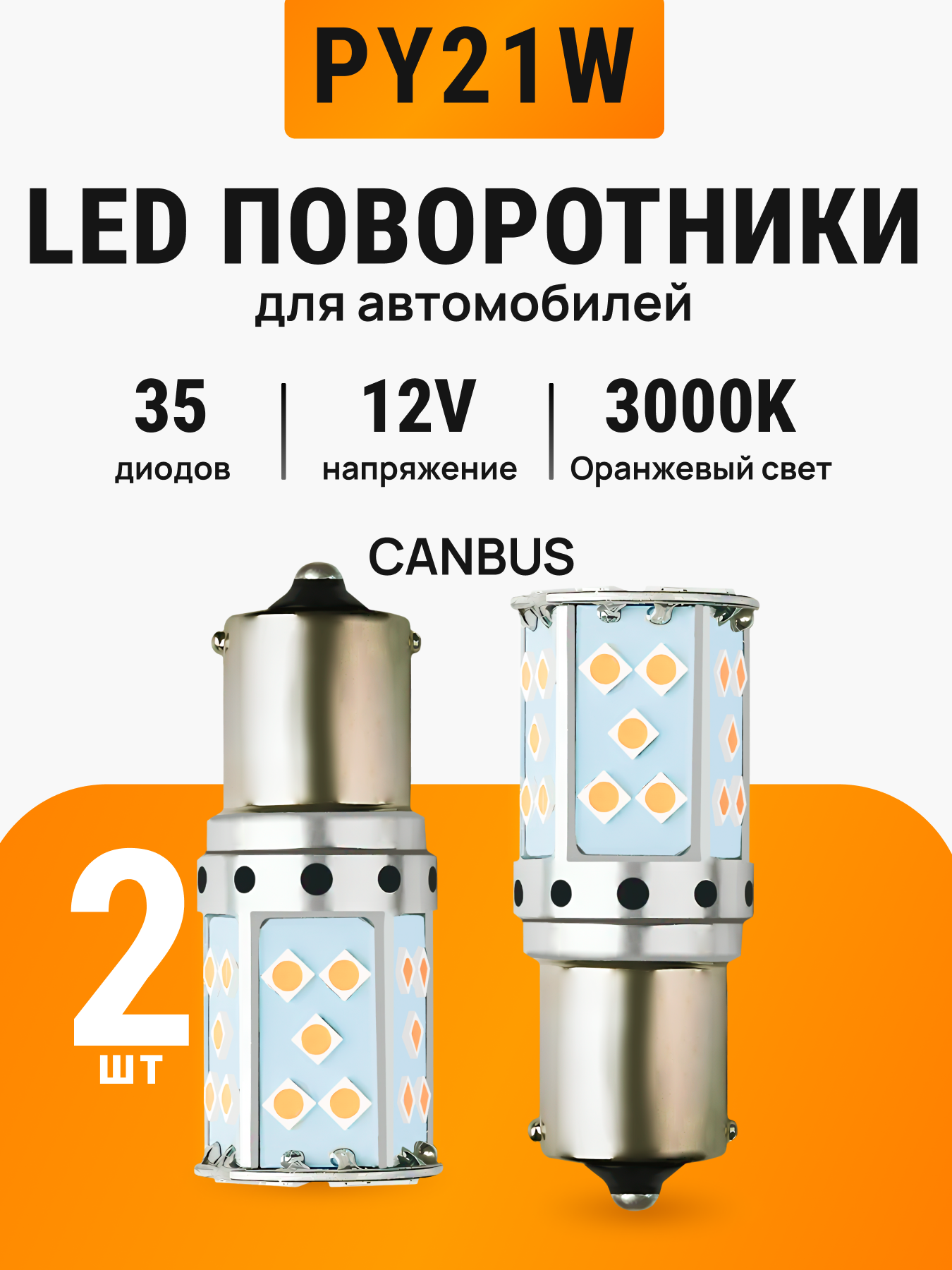 Лампы поворотников PY21W, светодиодные, комплект 2шт, мощность 55 Вт, цоколь PY21W: сравнение цен, характеристики, фото, актуальное наличие и цены.