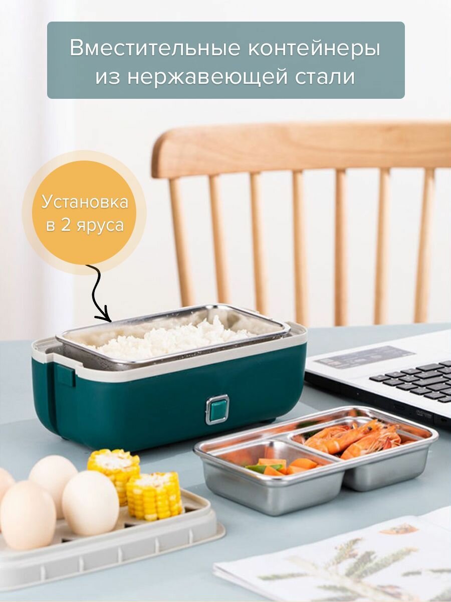 Ланч бокс электрический с отделениями, Контейнер для еды с термосумкой, Ланчбокс двухъярусный с подогревом, 220V: сравнение цен, характеристики, фото, актуальное наличие и цены.