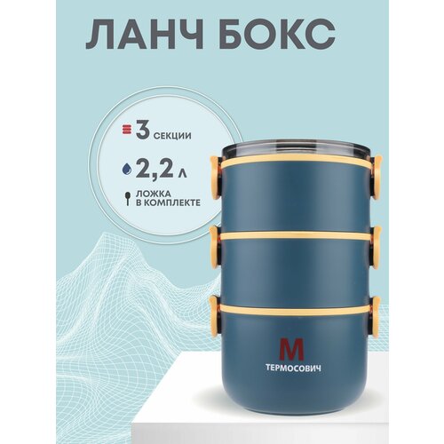 Купить Ланч бокс (контейнер) для еды 2,2 л, синий, ложка, 3 секции, Термосович с доставкой по всей России. Ланч бокс (контейнер) для еды 2,2 л, синий, ложка, 3 секции, Термосович: сравнение цен, характеристики, фото, актуальное наличие и цены.
