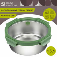 Ланч-бокс стальной со стеклянной крышкой, 1,5 л, зеленый, Smart Solutions, SFE-SS-LB-ST-GLS-GRN-1.5: сравнение цен, характеристики, фото, актуальное наличие и цены.