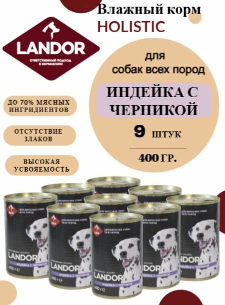 Купить Полнорационный влажный корм LANDOR для собак всех пород индейка с черникой 400г х 9шт. с доставкой по всей России. Полнорационный влажный корм LANDOR для собак всех пород индейка с черникой 400г х 9шт.: сравнение цен, характеристики, фото, актуальное наличие и цены.