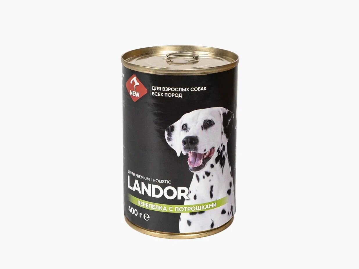 Полноценный сбалансированный влажный корм для собак с перепелкой и потрошками, изготовлен из свежего мяса и отборных ингредиентов.