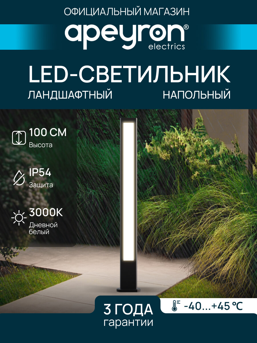 Уличный светодиодный напольный светильник Shadow Apeyron 31-13 с теплым белым свечением 3000К / 1540Лм/ 22Вт / 230В / IP54, 100х50х1000мм, чёрный: сравнение цен, характеристики, фото, актуальное наличие и цены.