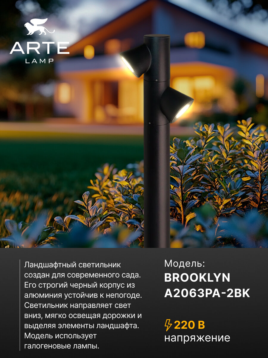 Ландшафтный светильник Arte Lamp BROOKLYN A2063PA-2BK 2хGU10 35Вт черный: сравнение цен, характеристики, фото, актуальное наличие и цены.