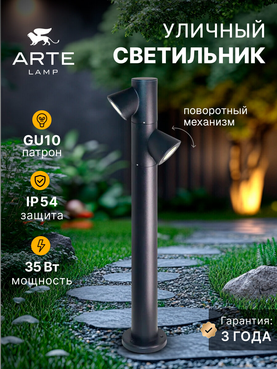 Купить Ландшафтный светильник Arte Lamp BROOKLYN A2063PA-2BK 2хGU10 35Вт черный с доставкой по всей России.