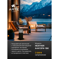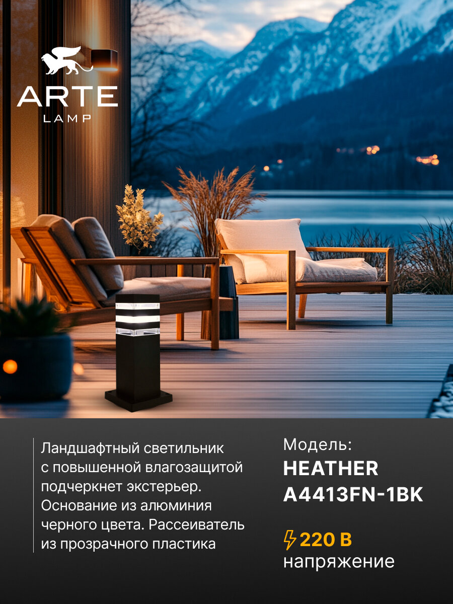 Ландшафтный светильник Arte lamp HEATHER A4413FN-1BK / E27 / 1х20Вт / IP54 / чёрный: сравнение цен, характеристики, фото, актуальное наличие и цены.
