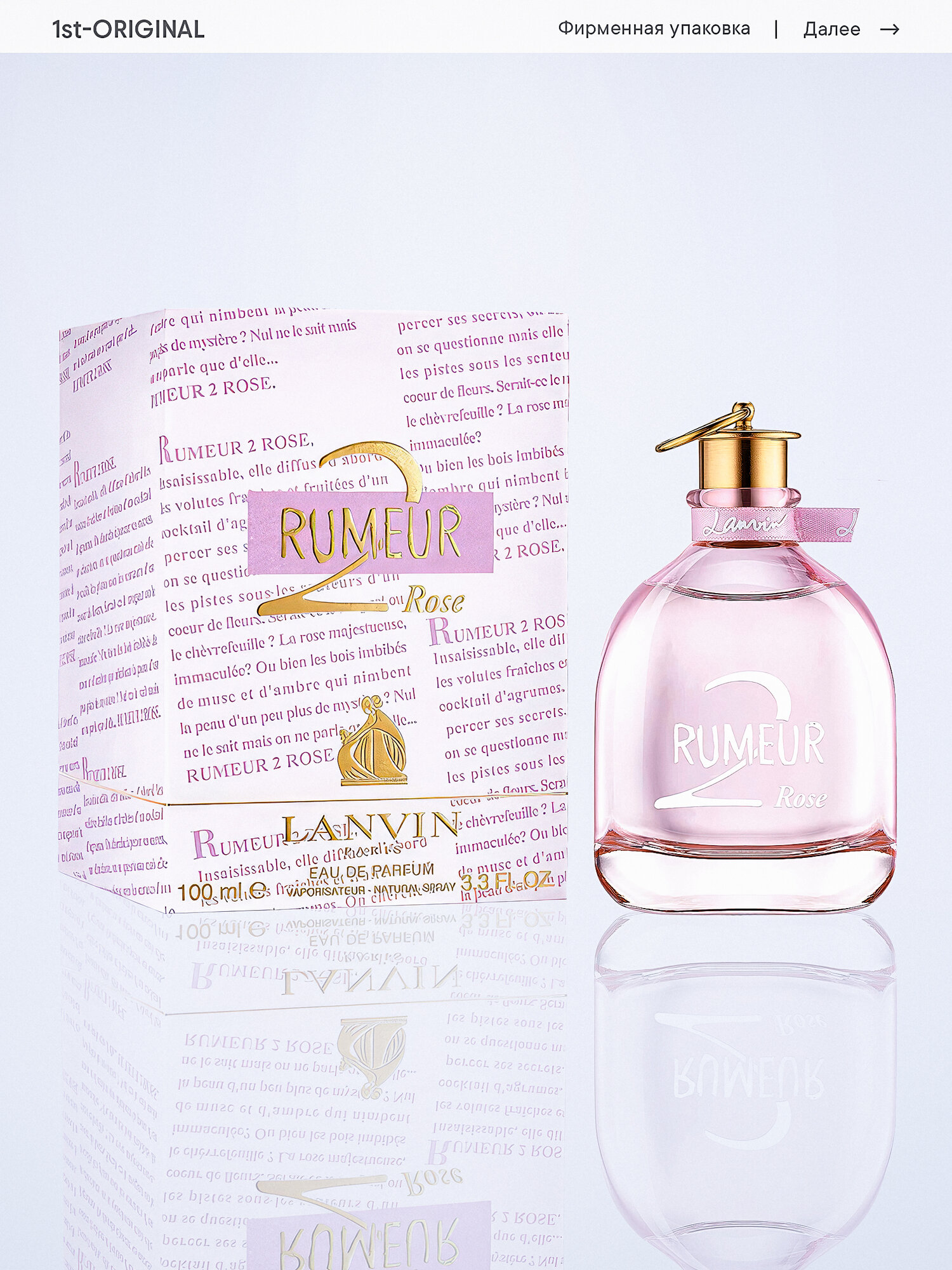 Дивный аромат наполняет благоуханием и поднимает настроение. Он раскрывается постепенно. Сначала появляется цитрусовый запах, а затем он вытесняется нежной розой, которая проявляется во всем великолепии. Исчезает парфюмерная композиция также достойно, оставляя за собой легкий шлейф. Роскошную LANVIN Rumeur 2 Rose можно купить во флаконах разного объема - 100, 50 или 30 мл.