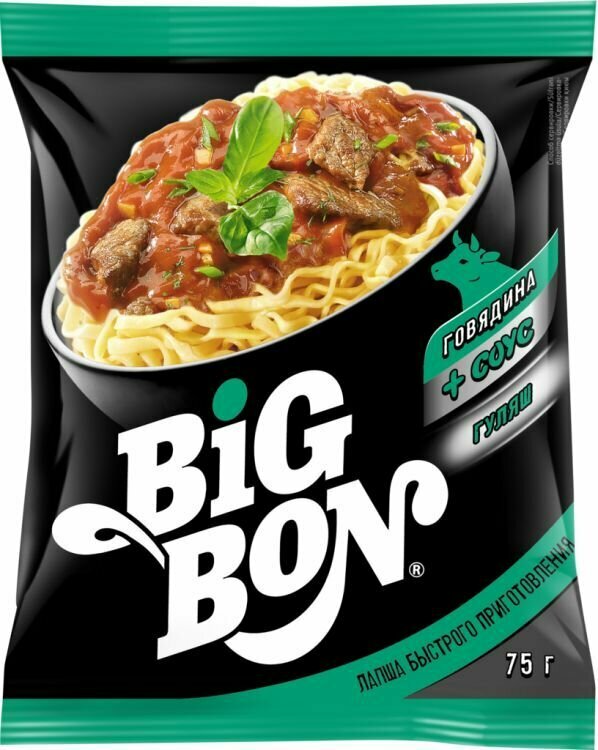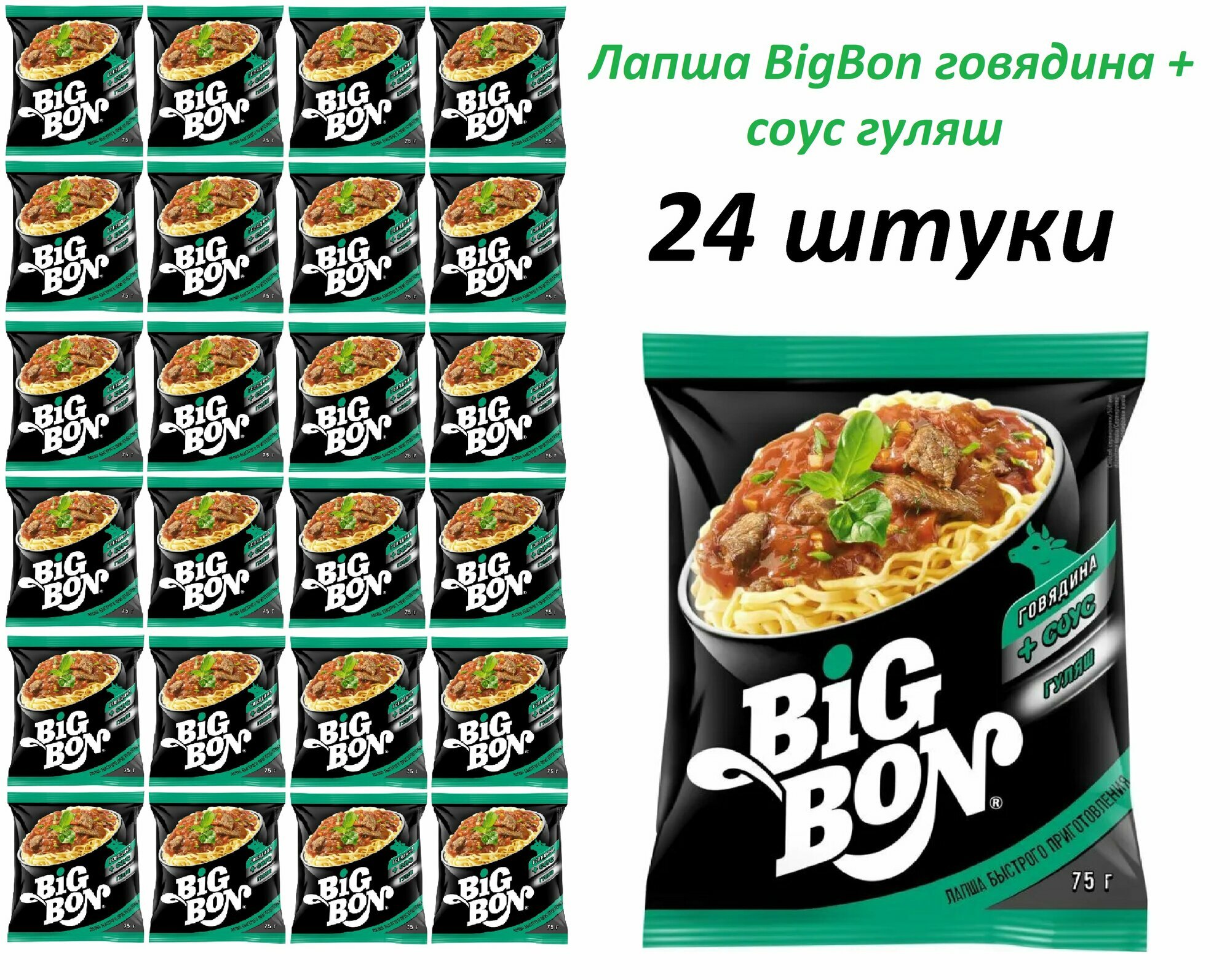 Лапша быстрого приготовления BIG BON говяжья + соус гуляш 75 г — 24 штуки: сравнение цен, характеристики, фото, актуальное наличие и цены.