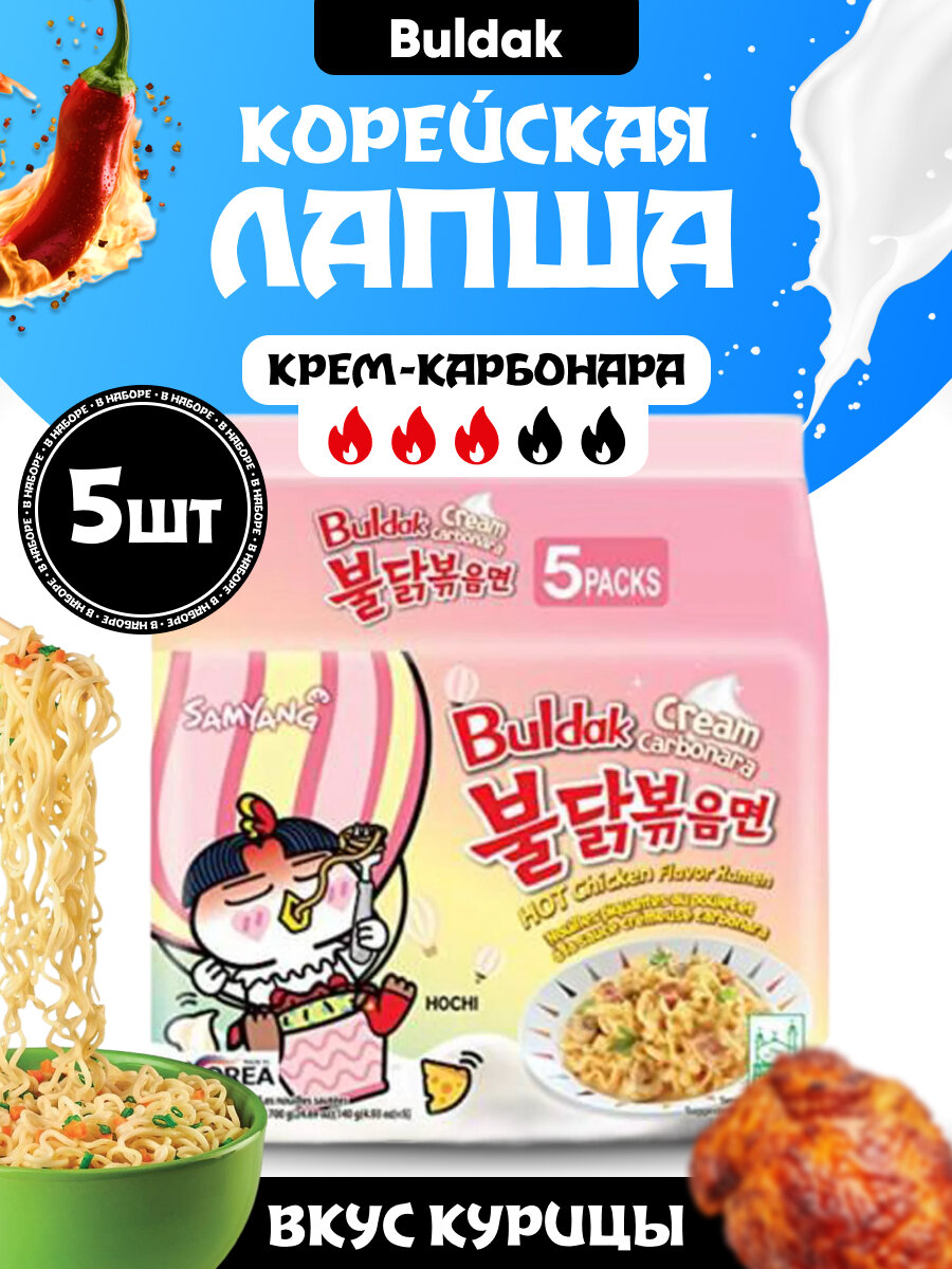 Купить Лапша быстрого приготовления Samyang Buldak Cream-Carbonara, 5 шт с доставкой по всей России. Лапша быстрого приготовления Samyang Buldak Cream-Carbonara, 5 шт: сравнение цен, характеристики, фото, актуальное наличие и цены.