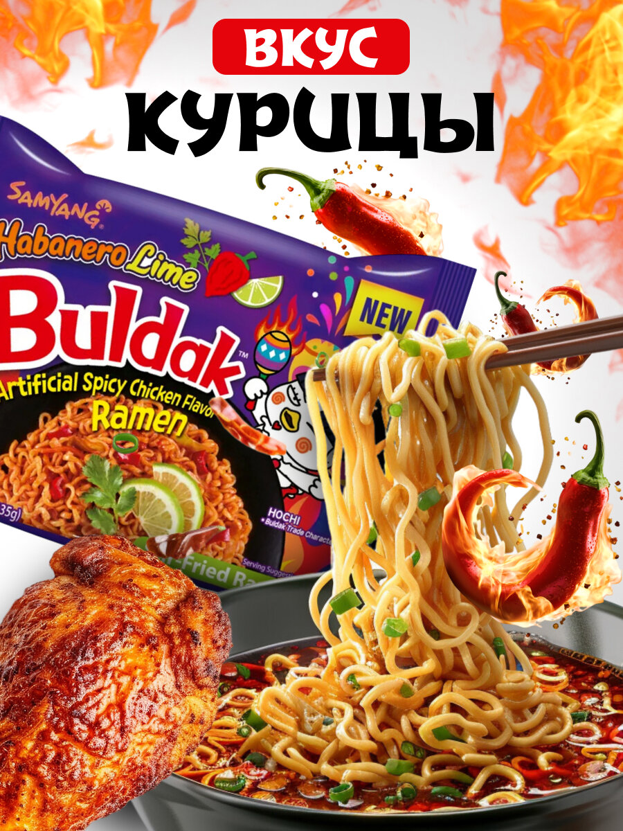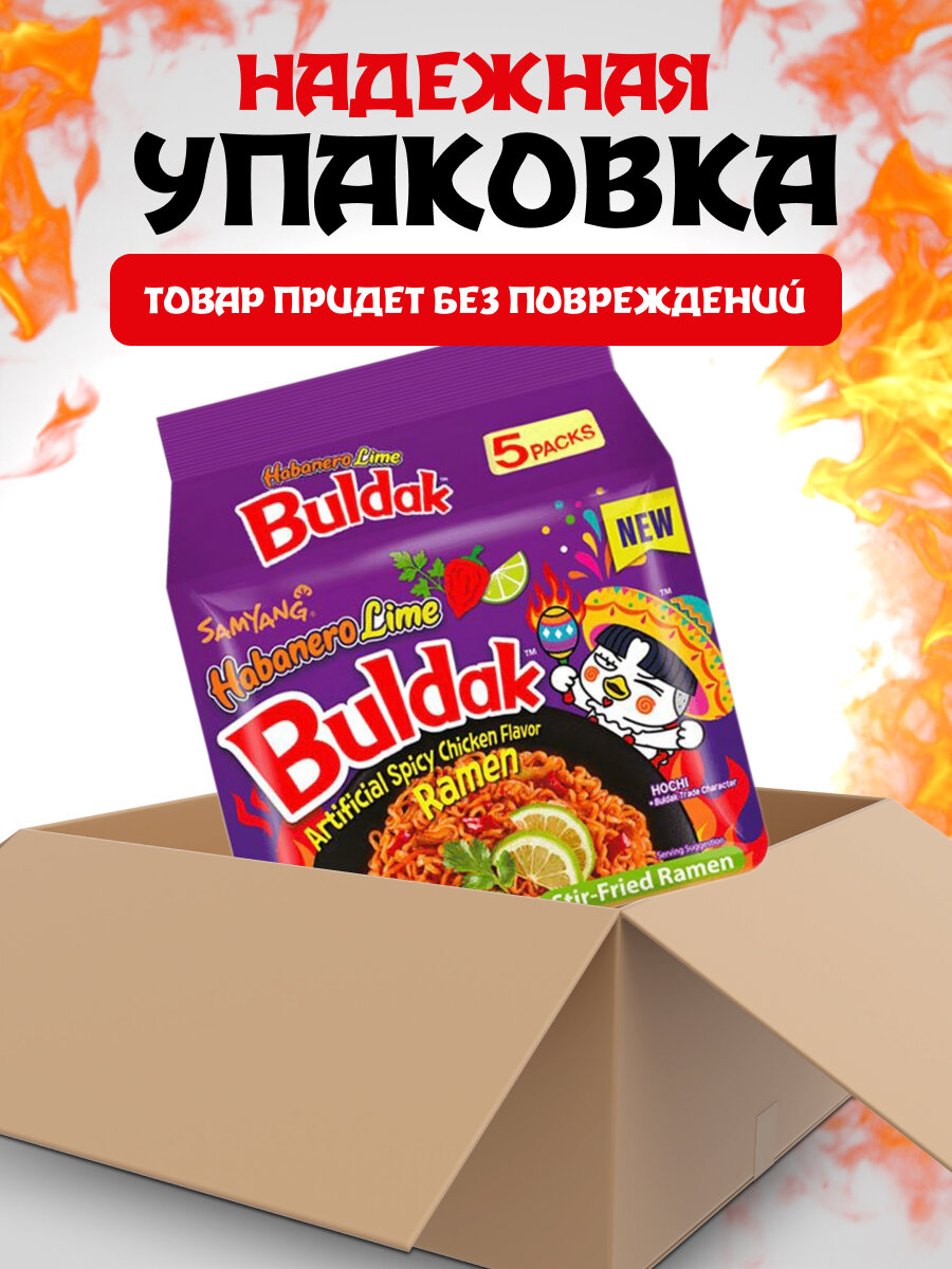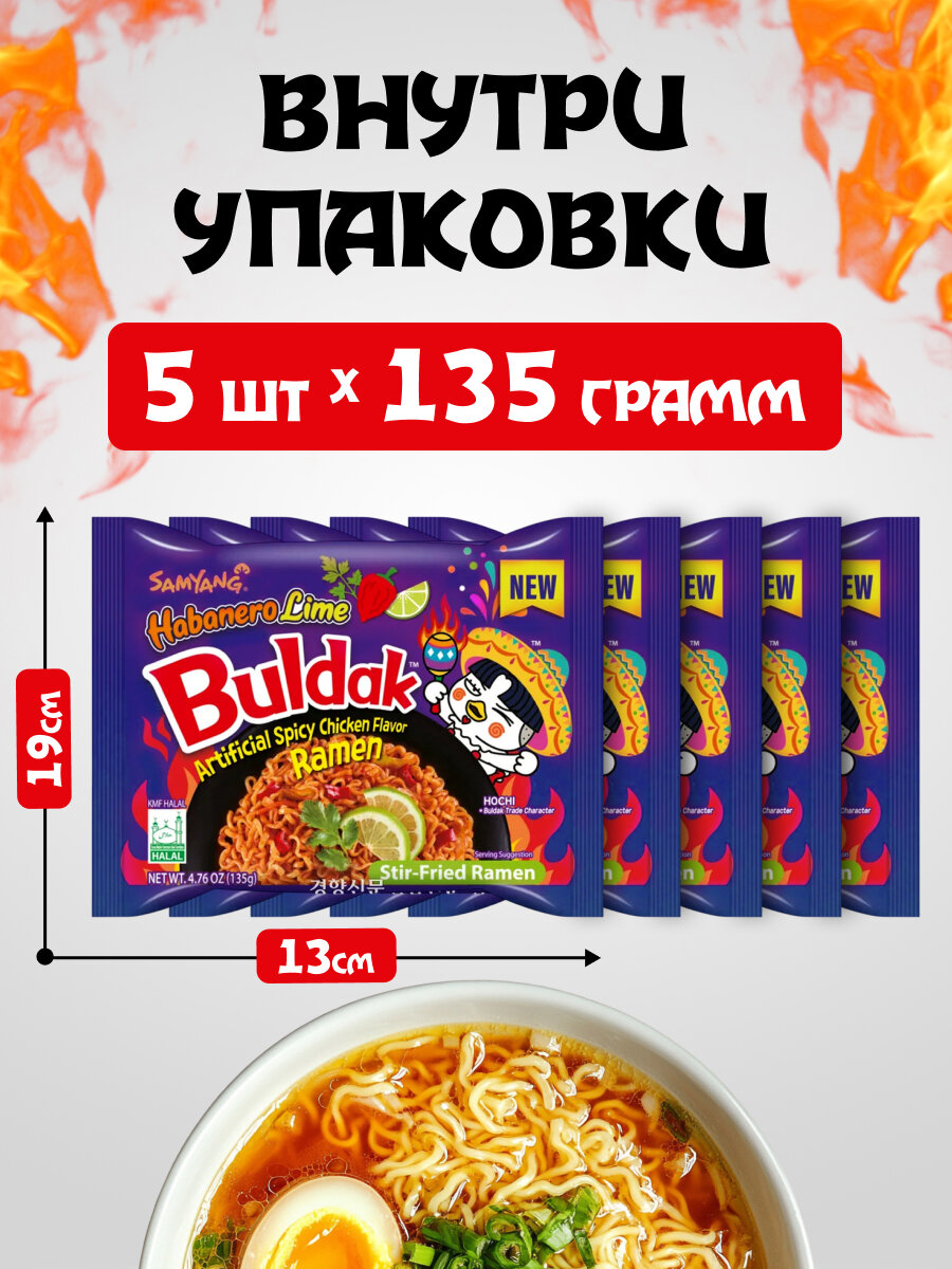 Купить Лапша быстрого приготовления Samyang Buldak Habanero Lime со вкусом острой курицы и лайма, набор 5 шт. с доставкой по всей России.