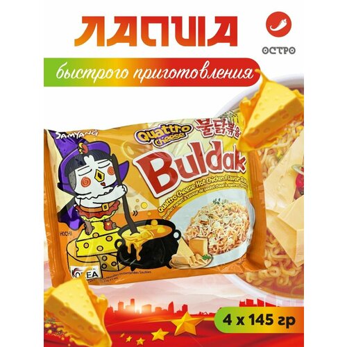 Попробуйте корейскую лапшу быстрого приготовления со вкусом Четыре сыра SAMYANG BULDAK! Эта лапша завоевала сердца любителей острого и насыщенного вкуса. Состав этой лапши включает разнообразные сыры, которые придают блюду уникальный кремовый и насыщенный вкус.