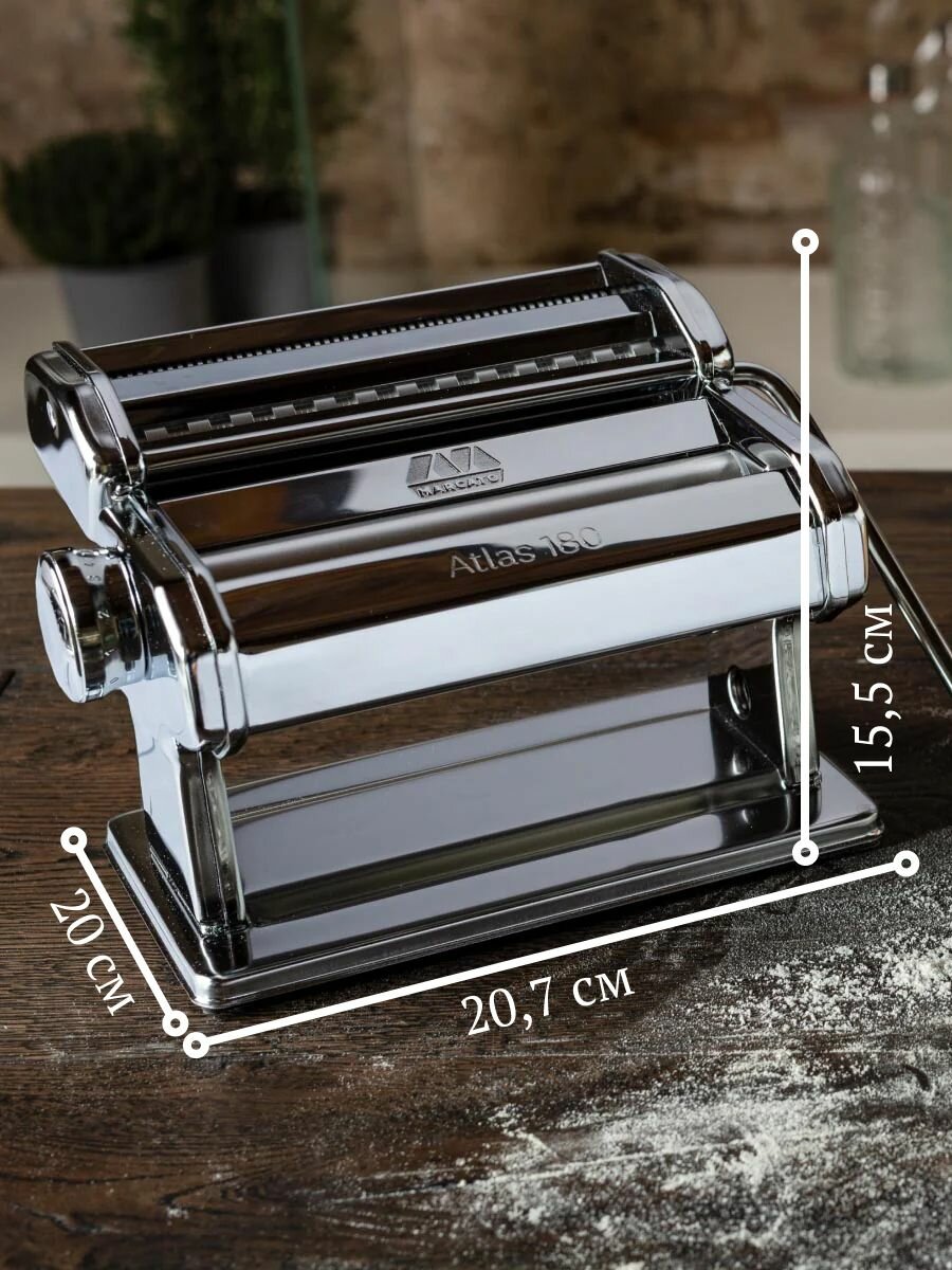 Ручная итальянская лапшерезка Atlas 180 Classic – это высококачественная паста-машина и тестораскатка от знаменитого итальянского бренда Marcato, созданная для удобного и быстрого приготовления вкусной домашней пасты и раскатки теста для приготовления самой разнообразной выпечки в домашних условиях.