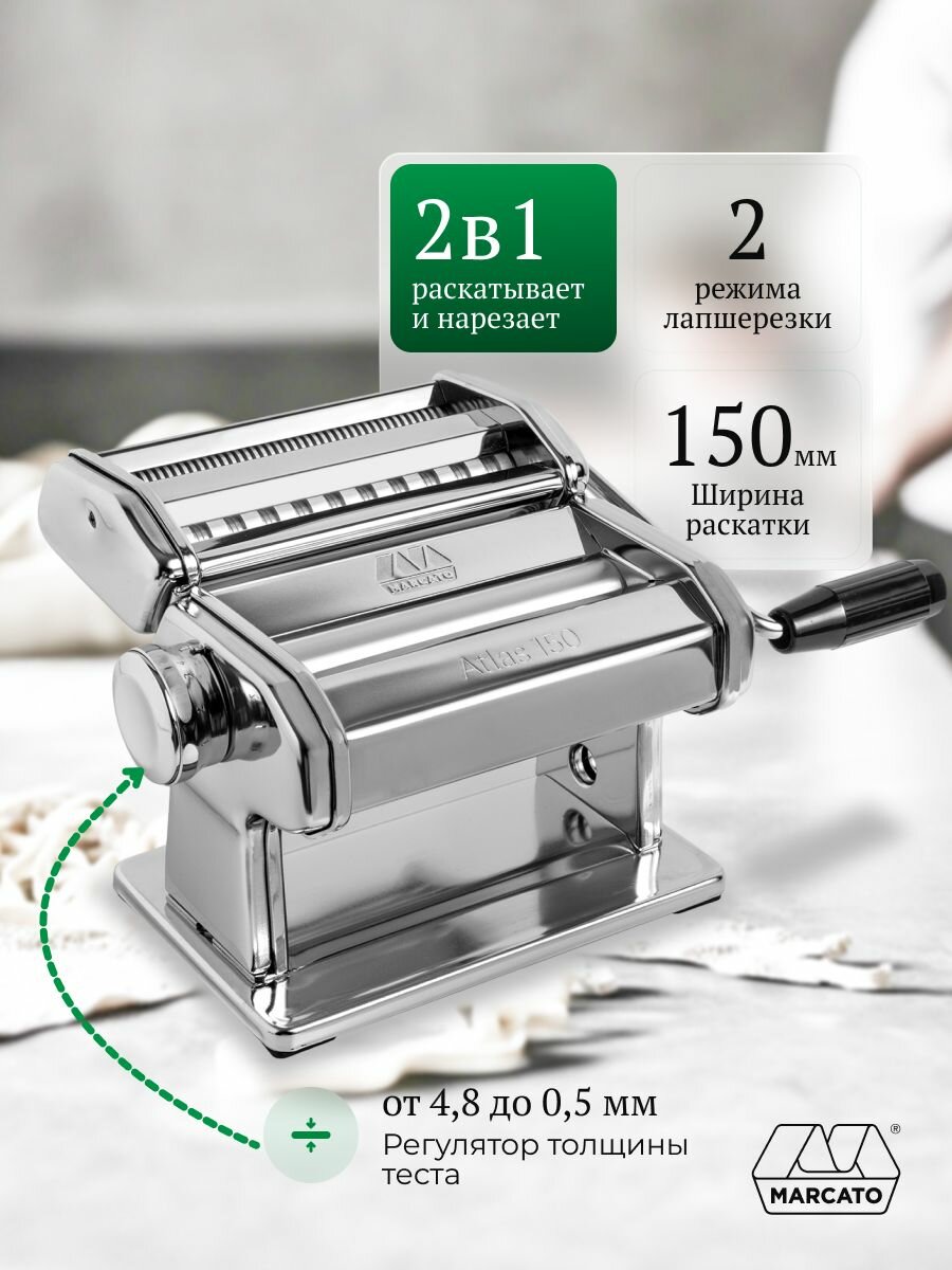 Лапшерезка — тестораскатка ручная Marcato Classic ATLAS 150 с 5-ю насадками: сравнение цен, характеристики, фото, актуальное наличие и цены.