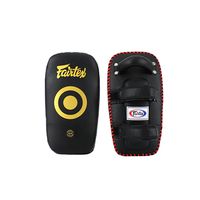 Лапы для тайского бокса Fairtex KPLC5. Лапы изготовлены из износостойкой микрофибры повышенной прочностью. Облегченная модель по сравнению с старшими моделями KPLC2/3. За счет скругленного бокового шва KPLC на сегодняшний день являются наиболее удобными для любых техник и любых единоборств. Скругленный боковой шов минимизирует вероятность травм голени при сильных ударах ногами. Идеально подходят для отработки всех техник ударов. Комфортно сидят на руке и плотно держатся за счет качественной застежки.