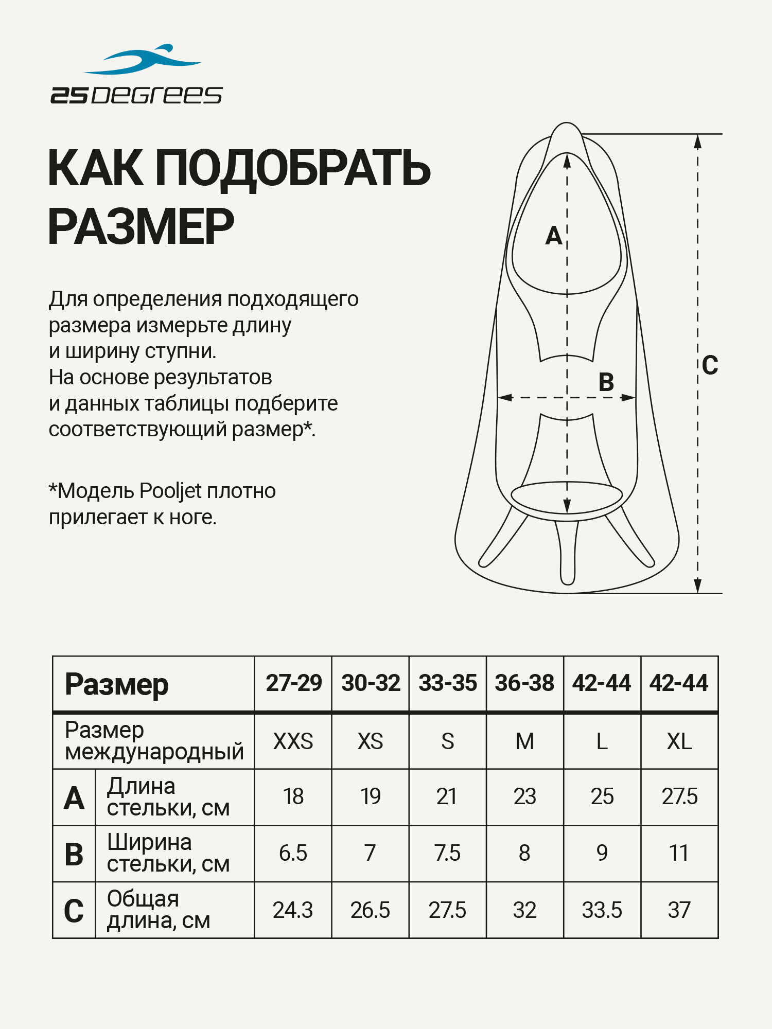 Тренировочные ласты Pooljet от бренда 25DEGREES выполнены из прочного высококачественного силикона. Комфортны в носке, не сдавливают ступню и пальцы ног. Силиконовый материал мягкий, не натирает ноги. Ласты обладают небольшим весом и повышенным сцеплением с поверхностью - отталкиваясь от бортика бассейна, снижается риск соскальзывания ноги и получения травмы. Универсальный открытый мысок позволяет легко подобрать нужный размер ласт. Закрытая пятка облегает стопу, становясь ее продолжением. Подходят новичкам и тем, кто хочет повысить эффективность работы ног без вреда для суставов.