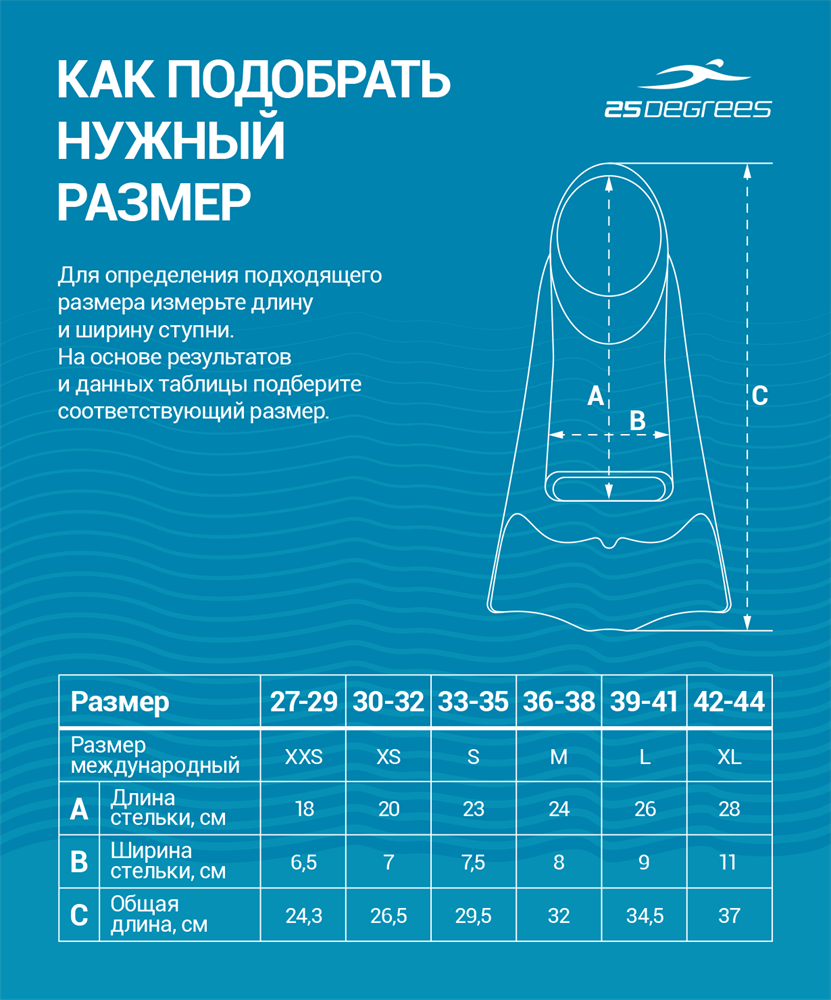 Тренировочные ласты Pooljet от бренда 25DEGREES выполнены из прочного высококачественного силикона. Комфортны в носке, не сдавливают ступню и пальцы ног. Силиконовый материал мягкий, не натирает ноги. Ласты обладают небольшим весом и повышенным сцеплением с поверхностью - отталкиваясь от бортика бассейна, снижается риск соскальзывания ноги и получения травмы. Универсальный открытый мысок позволяет легко подобрать нужный размер ласт. Закрытая пятка облегает стопу, становясь ее продолжением. Подходят новичкам и тем, кто хочет повысить эффективность работы ног без вреда для суставов. Преимущества: Высококачественный мягкий силикон; Небольшой вес; Открытый мысок; Закрытая пятка; Хорошее сцепление с поверхностью при отталкивании. Характеристики: Материал: 100% силикон Цвет: черный/серый Размер: S (33-35) Тип упаковки: пакет zip-lock Производство: Китай