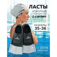 Ласты для плавания короткие силиконовые Larsen 6975 - это настоящий подарок для всех любителей плавания! Ласты для бассейна короткие Larsen станут незаменимым спутником для начинающих и опытных пловцов. Короткие ласты спроектированы для активного отдыха и спортивных тренировок в открытых водоемах и бассейнах. Преимущества: улучшение техники и скорости плавания, комфорт, практичность. Правильно подобранное соотношение лопасти к калоше в сочетании с высококачественным материалом и ребрами жесткости, которые обеспечивают правильную гидродинамику и более сильный толчок, делают ласты Larsen идеальными для обучения. Ласты для бассейна силиконовые короткие позволяют поддерживать правильное положение тела в воде, обеспечивая отличную маневренность и снижая нагрузку на колени и голеностопы, тем самым предотвращая травмы. В укороченных спортивных ластах вы будете меньше уставать, а выносливость и профессионализм будут расти с каждой тренировкой. Выполненные из мягкого и эластичного силикона, спортивные ласты не натирают даже нежную кожу, обеспечивая комфорт при длительном ношении. Цельная калоша анатомической формы плотно облегает ногу, предотвращая соскальзывание. Открытый носок прекрасно отводит попавшую в ласты воду. Ласты идеально подходят детям, подросткам и взрослым для оздоровительного плавания, тренировок в бассейне, снорклинга. Силиконовые короткие ласты оптимальный выбор для детей, которые учатся плавать. Наслаждайтесь водой и ощущайте себя уверенно вместе с ластами Larsen!