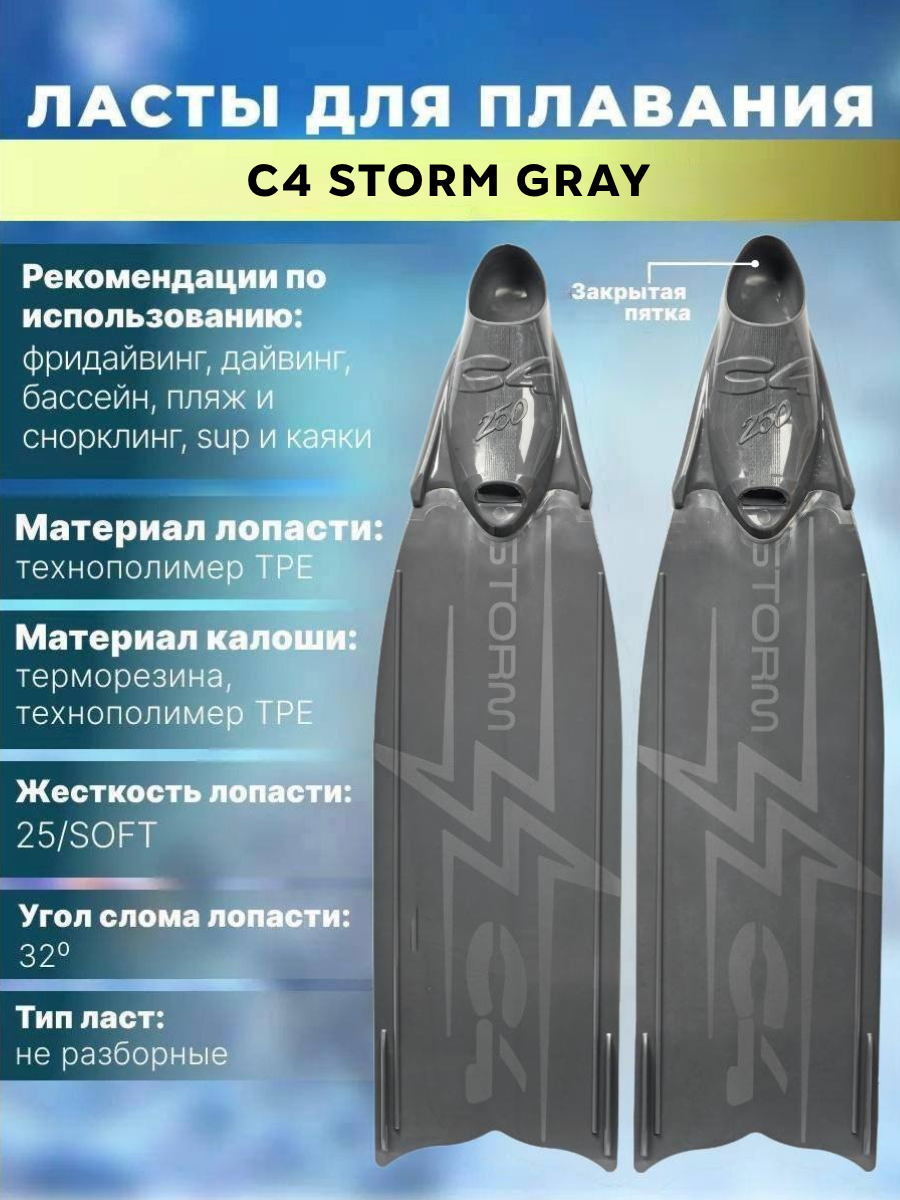 Ласты для плавания C4 CARBON STORM GRAY, р-р 36-37: сравнение цен, характеристики, фото, актуальное наличие и цены.