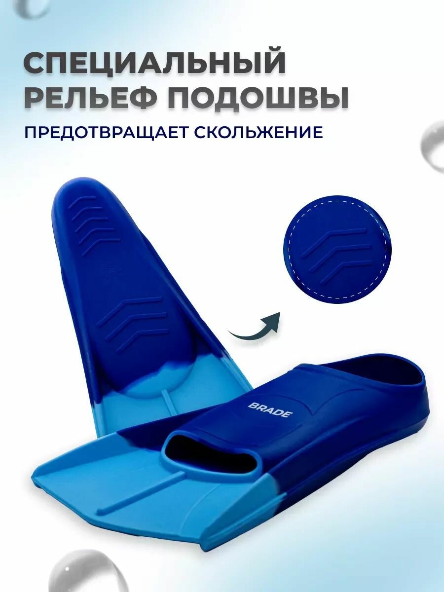 Купить Ласты для бассейна тренировочные для плавания короткие BRADE синий (размер L 42-44) с доставкой по всей России.