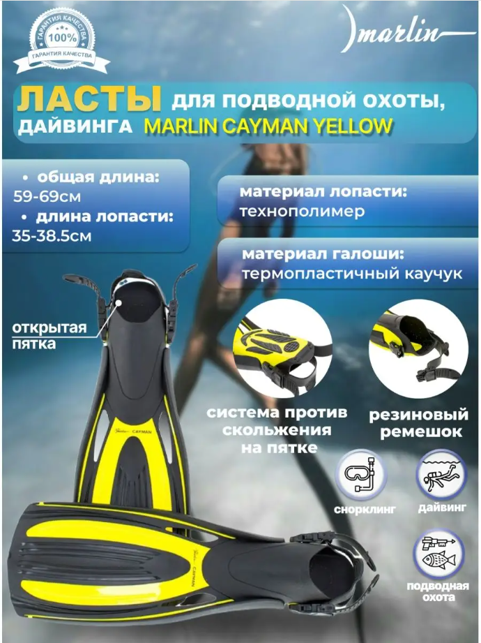 Ласты для плавания MARLIN CAYMAN, желтые, р-р 39-41: сравнение цен, характеристики, фото, актуальное наличие и цены.