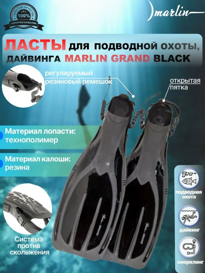 Ласты для плавания MARLIN GRAND, черный, р-р 39-45: сравнение цен, характеристики, фото, актуальное наличие и цены.