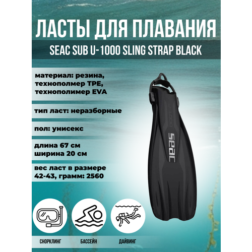 Ласты для плавания SEAC SUB U-1000 SLING STRAP BLACK, р-р L-XL/44-46: сравнение цен, характеристики, фото, актуальное наличие и цены.