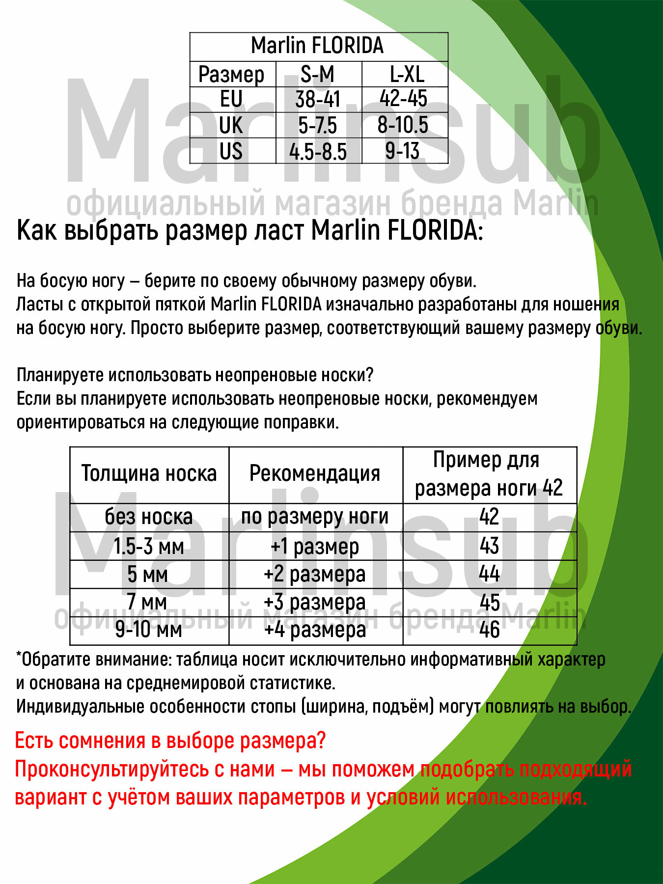Ласты Marlin Florida (Марлин Флорида) - универсальная модель для дайвинга и сноркелинга с открытой пяткой. Удобная калоша позволяет надевать их на босу ногу, неопреновый носок или коралловые тапочки. Регулировка размера производится с помощью ремешка. Таким образом, одной парой ласт охватывается несколько определённых размеров (38-41, 42-45). При этом также расширяется круг возможных потребителей. Ласты упакованы в удобную сумку-рюкзак для переноски. Ласты Marlin Florida изготавливаются из современных высококачественных полимерных материалов по типу профессиональных дайверских моделей. Комбинированием используемых полимеров обеспечивается повышенный комфорт. Подошва калоши для безопасного передвижения - на берегу или в лодке - выполнена из жёсткого пластика с антискользящими вставками резины. Верхняя часть калоши из резины компенсирует жёсткость гребка, не натирает кожу.