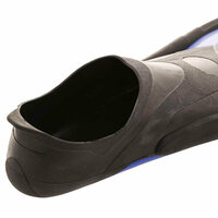 Ласты для плавания с закрытой пяткой. Лопасть ласты изготовлена из достаточно жесткого полимера, однако благодаря двум канавкам по краям, во время гребка она принимает форму желоба, что безусловно положительно сказывается на силе гребка. Прочная резина галоши жестко фиксирует стопу для максимально эффективного передачи усилия. В комплекте удобная сетчатая сумочка для переноски и хранения ласт.