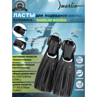 Ласты Marlin Scuba EBS (Марлин Скуба ЭБС) – профессиональные ласты с открытой пяткой для дайвинга. Предназначены для одевания на неопреновый ботинок. Двухкомпонентная лопасть изготовлена из технополимера и термопластичной резины. Конструкция лопасти имеет несколько особенностей, которые обеспечивают максимальную силу гребка, скорость и маневренность: