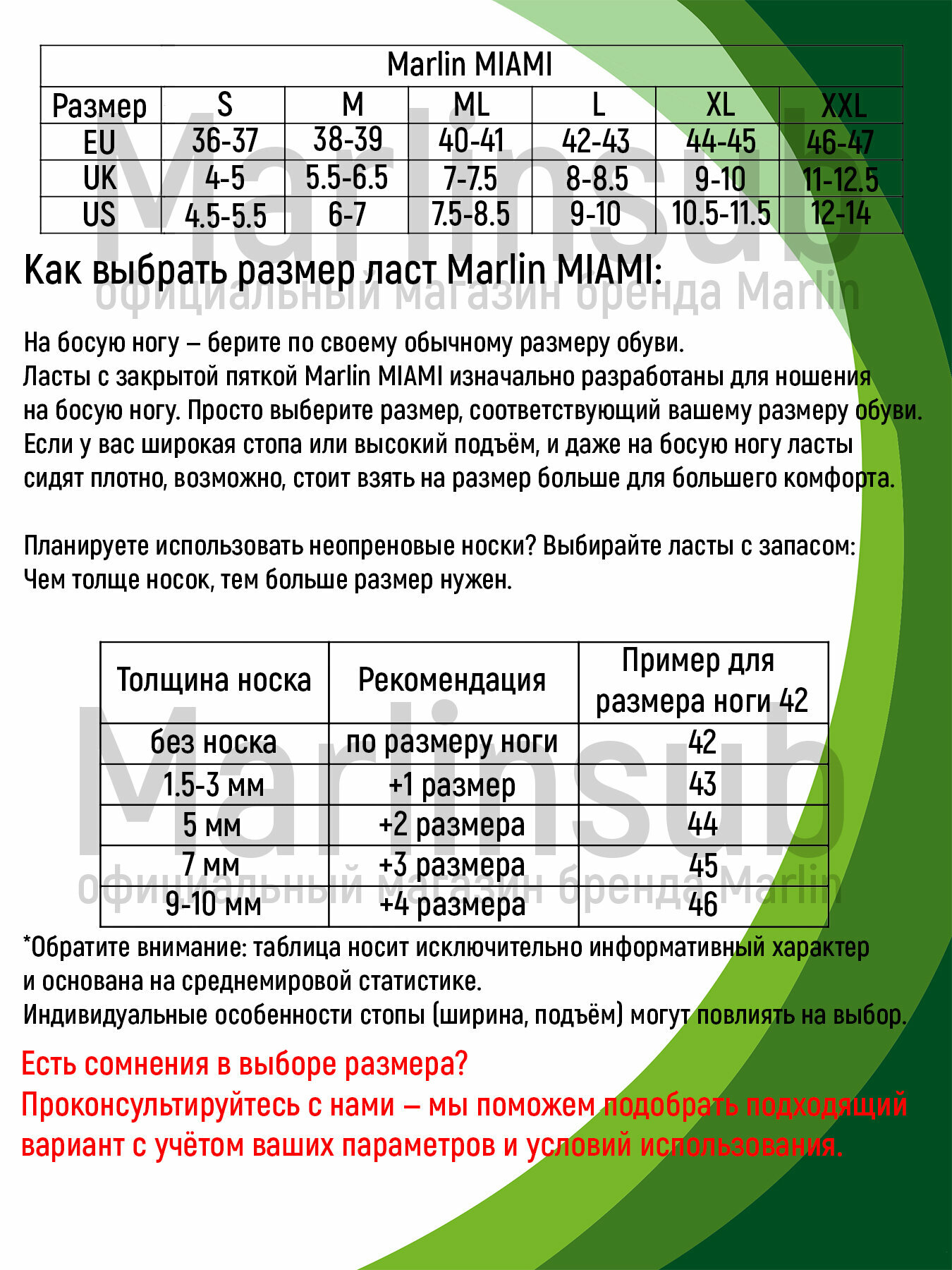 Ласты Marlin Miami: сравнение цен, характеристики, фото, актуальное наличие и цены.
