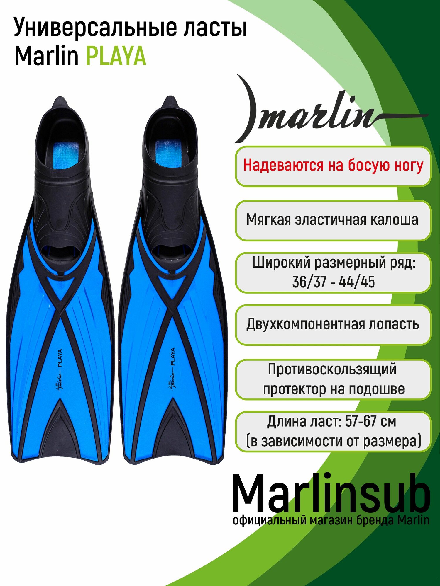Ласты с закрытой пяткой Marlin PLAYA, RU38-39 (маркировка 40-41), черный/светло-синий: сравнение цен, характеристики, фото, актуальное наличие и цены.