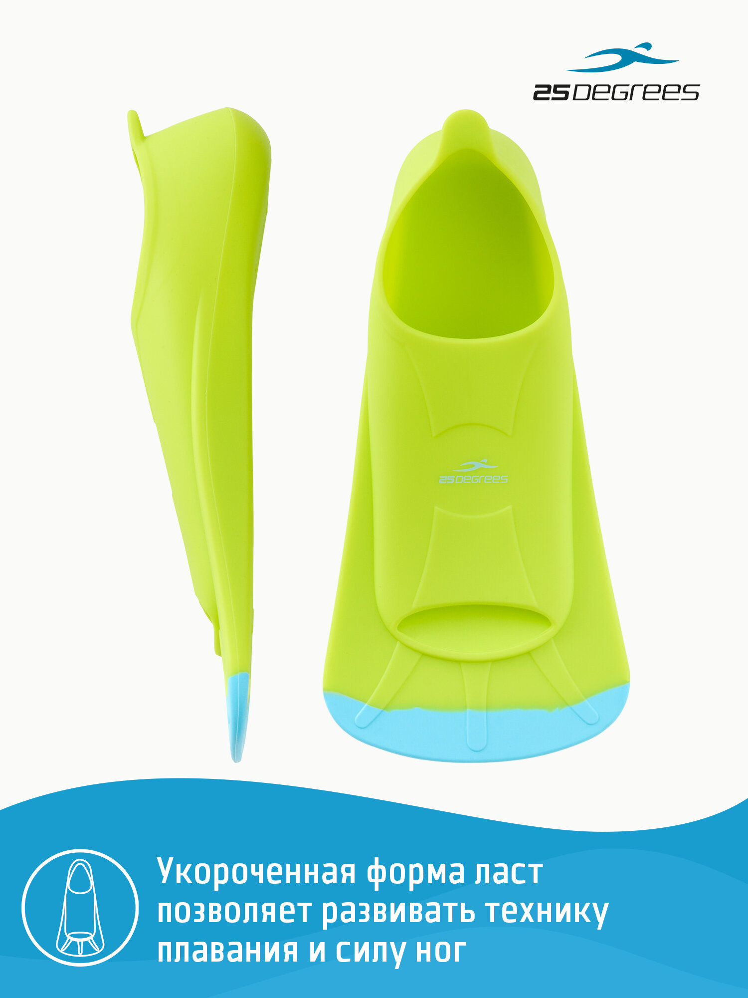 Ласты тренировочные для плавания в бассейне 25DEGREES голубой/лайм M (40-42): сравнение цен, характеристики, фото, актуальное наличие и цены.