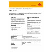 Добавка SikaLatex (Зикалатекс), жидкий состав белого цвета для смешивания со строительными растворами и улучшения их свойств. Позволяет снизить усадку цементных растворов, повышает прочность, трещиностойкость и водонепроницаемость смеси. Уменьшает вероятность появления высолов на поверхности кладочных растворов. Также уменьшает пыление цементных стяжек и повышает пластичность растворов. Внимание! Состав SikaLatex не применяется в чистом виде. Необходимо использовать раствор, который состоит из песка и цемента, замешанного на добавке с водой.