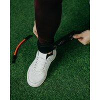 Трубчатый эспандер с помощью мягких и надежных манжет фиксируется на ногах (чаще на бедрах, реже на лодыжках), создавая дополнительное сопротивление при привычных для спортсмена движениях - ускорениях, упражнениях на координационной лестнице, боковых прыжках, выпадах, отведениях ног и т. д. Нагрузка регулируется выбором пары тросов. Тросы цепляются карабинами за полукольца, расположенные на каждой манжете. Благодаря неопрену, пришитому с прилегающей к ногам стороне, манжеты не сползают и уверенно держатся на закрепленном месте.