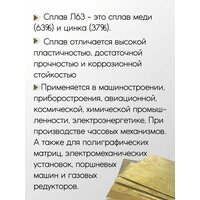 Латунь марки Л63 – это сплав, который содержит 63% меди и 35% цинка. В качестве легирующих примесей используются: фосфор, олово, никель, сурьма, однако содержание этих элементов не превышает 0,5%. Сплав имеет однофазную структуру, благодаря чему легко поддается обработке в горячем и холодном состоянии. Изготовление латуни марки Л63 регламентирует ГОСТ 15527-2004.