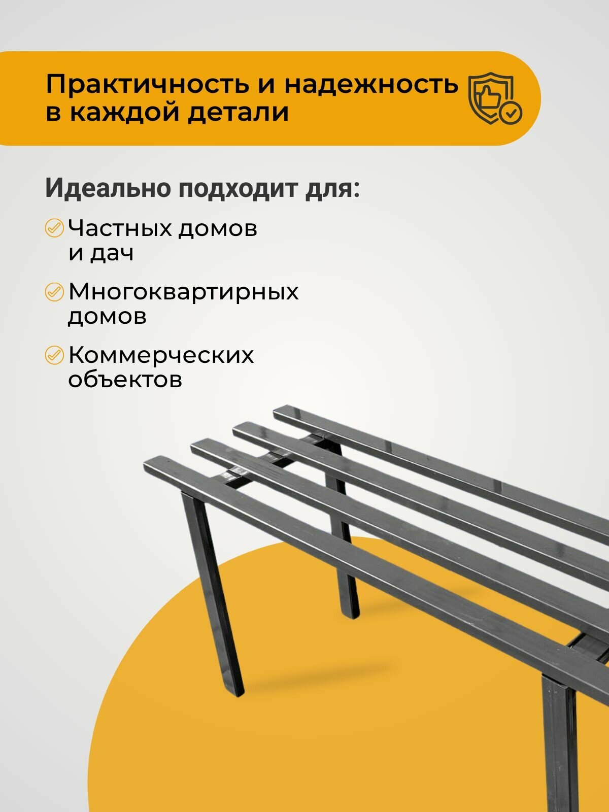 Садовая металлическая лавочка покрыта специальным полимерным слоем, который предотвращает проникновение влаги к металлу даже при сильных осадках. Не боится перепадов температур. Может использоваться как дома, так и на улице