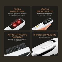 В лазерной щетке Gezatone Laser Hair применяется лазерное излучение в сочетании с вибромассажем, эти две методики успешно применяются для различных целей, в том числе для восстановления волосистой части головы. Воздействие "мягким" лазером с низкой интенсивностью излучения стимулирует волосяной фолликул на производство волоса, в результате волосы лучше растут и меньше выпадают, активизируются фолликулы, находящиеся в "спящем" состоянии. Но этим действие лазера не ограничивается, ведь именно низкоинтенсивный лазер запускает процесс восстановления энергетических процессов, то есть клетки восполняют дефицит энергии, укрепляя волосы, делая их более гладкими и блестящими. Лазерное излучение оздоравливает кожу, препятствуя появлению перхоти, снижает повышенную выработку кожного сала, улучшает выработку витамина D, который необходим волосам. Глубокий вибрационный массаж мягко и нежно стимулирует местный кровоток и лимфоток, снимает спазм сосудов головы, что приводит к снятию болевых синдромов, избавлению от стресса и усталости. Благодаря вибромассажу волосяные луковицы активно насыщаются кислородом, получают больше питательных веществ, и, как следствие, продуцируют более здоровый волос. Кроме того, лазерная расческа для волос оказывает расслабляющее действие, это превосходный массаж головы после тяжелого дня. Купить лазерную расческу стоит и в профилактических целях, ведь она прекрасно улучшает качество волос, укрепляет их изнутри, делая волосы более упругими, сильными и блестящими! Щётка работает от батареек.