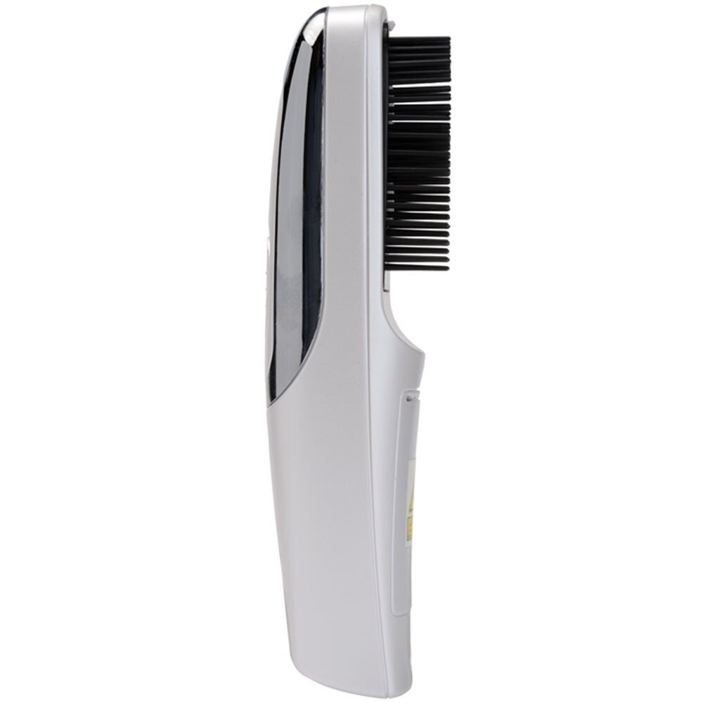 В лазерной щетке Gezatone Laser Hair применяется лазерное излучение в сочетании с вибромассажем, эти две методики успешно применяются для различных целей, в том числе для восстановления волосистой части головы. Воздействие "мягким" лазером с низкой интенсивностью излучения стимулирует волосяной фолликул на производство волоса, в результате волосы лучше растут и меньше выпадают, активизируются фолликулы, находящиеся в "спящем" состоянии. Но этим действие лазера не ограничивается, ведь именно низкоинтенсивный лазер запускает процесс восстановления энергетических процессов, то есть клетки восполняют дефицит энергии, укрепляя волосы, делая их более гладкими и блестящими. Лазерное излучение оздоравливает кожу, препятствуя появлению перхоти, снижает повышенную выработку кожного сала, улучшает выработку витамина D, который необходим волосам. Глубокий вибрационный массаж мягко и нежно стимулирует местный кровоток и лимфоток, снимает спазм сосудов головы, что приводит к снятию болевых синдромов, избавлению от стресса и усталости. Благодаря вибромассажу волосяные луковицы активно насыщаются кислородом, получают больше питательных веществ, и, как следствие, продуцируют более здоровый волос. Кроме того, лазерная расческа для волос оказывает расслабляющее действие, это превосходный массаж головы после тяжелого дня. Купить лазерную расческу стоит и в профилактических целях, ведь она прекрасно улучшает качество волос, укрепляет их изнутри, делая волосы более упругими, сильными и блестящими! Щётка работает от батареек.